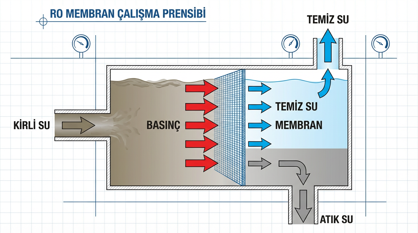 - Konsantrat (atık su): Membranın geri tuttuğu çözünmüş maddelerin yoğunlaştığı su. Bu su, kanalizasyona yönlendirilir.